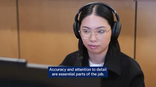 Hi, I’m Jessica. I’m a Sound Reporter in the New South Wales Courts. I record audio in a courtroom and turn it into a transcript. This is used by lawyers, judges, police and anyone in the courtroom who applies for it. Court can move really quickly with a lot of legal terms. Sound Reporters note down key point and facts to assist with efficient transcription later. Our work makes sure that everyone has access to the same information throughout court proceedings. Accuracy and attention to detail are essential parts of the job. It’s really unique job because we play an invisible but vital role in the courtroom. Our contribution makes an important impact of our justice system.